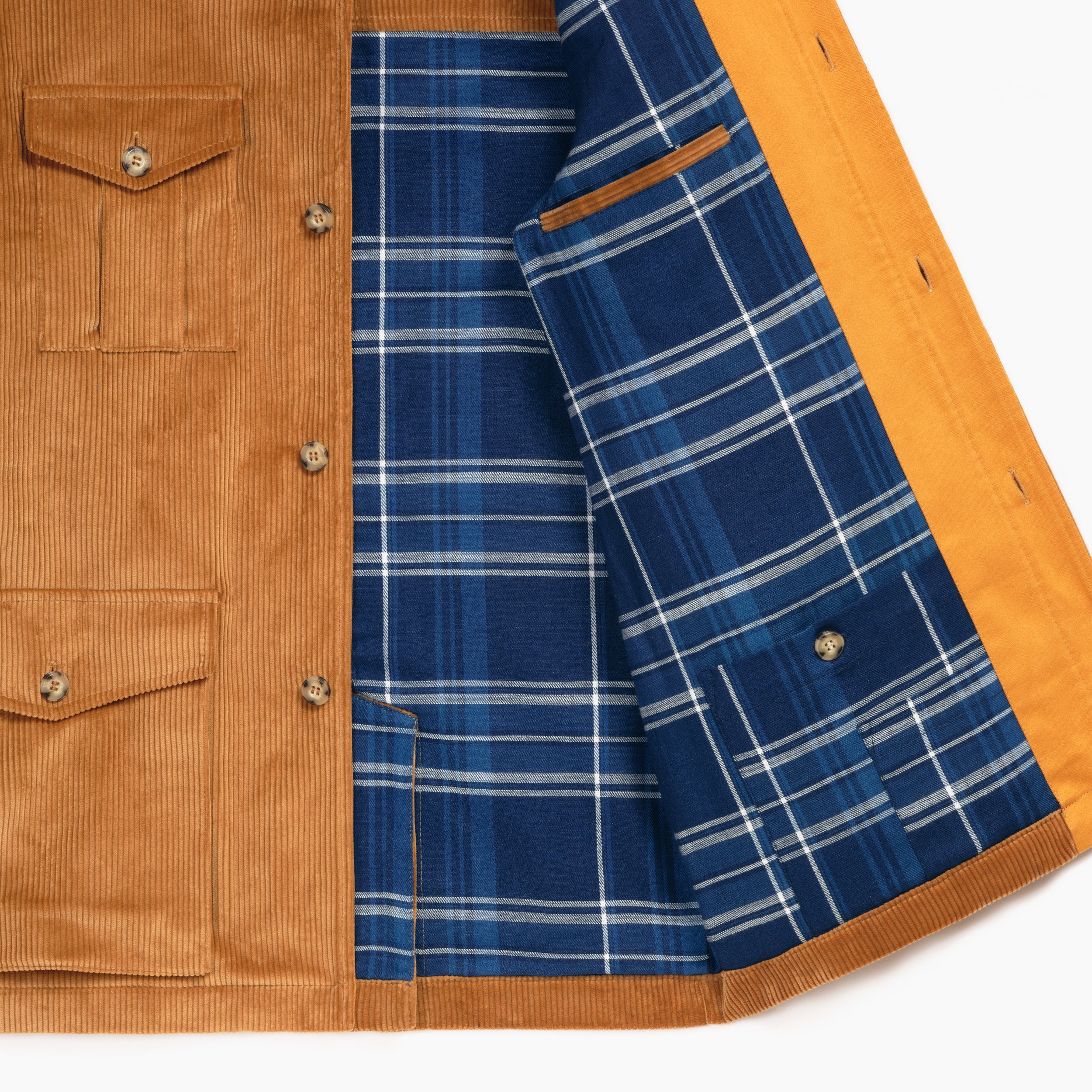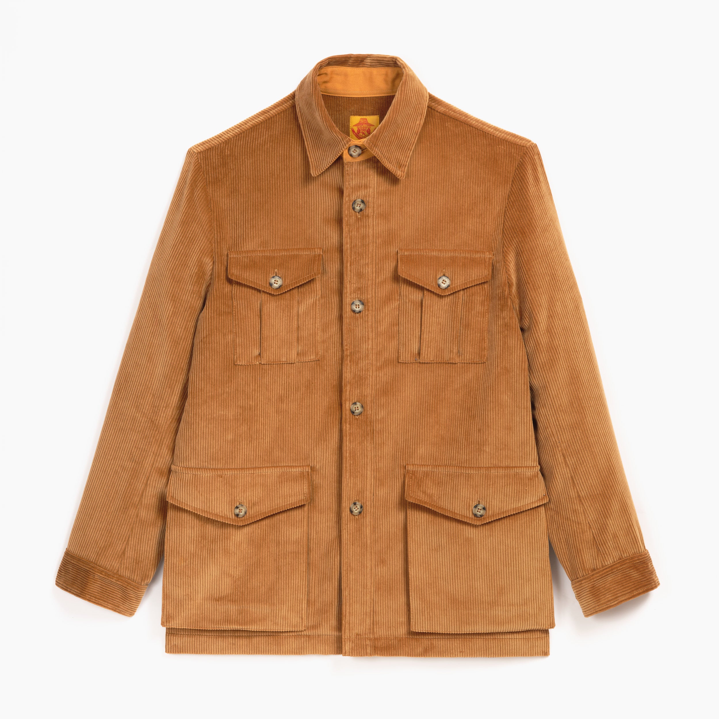 Veste de type saharienne, multi-poches, en coton couleur miel. Pratique et originale, elle se porte en toute occasion.