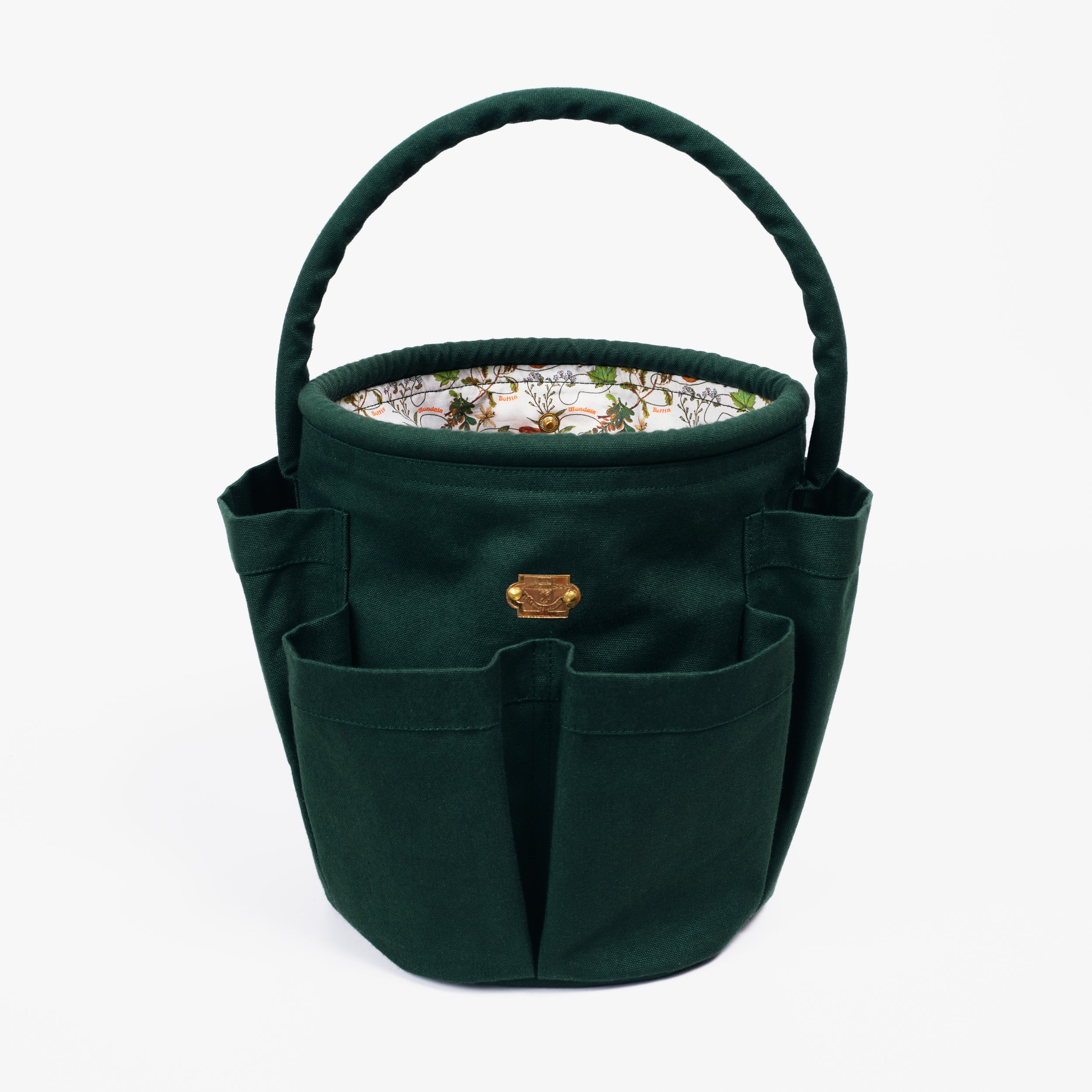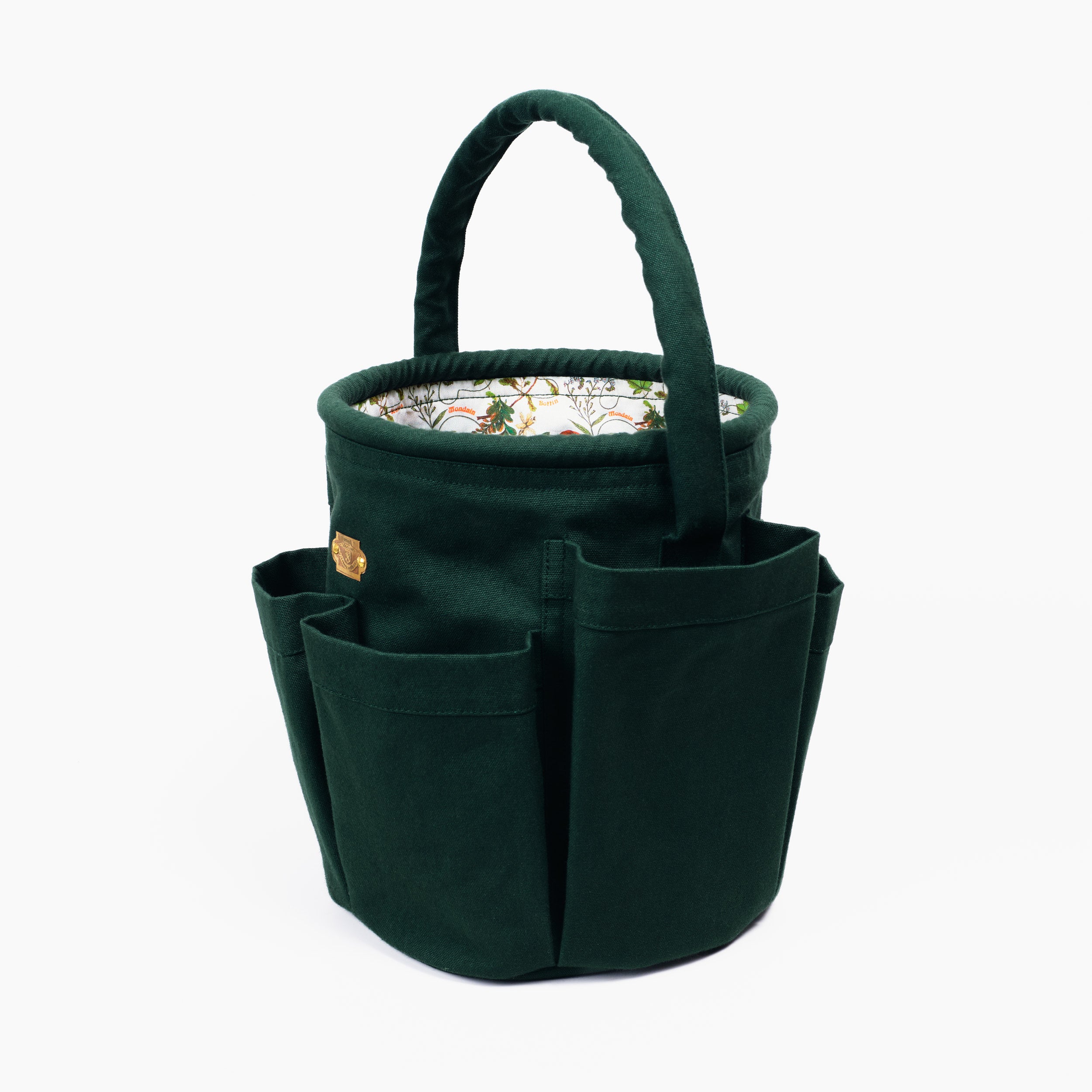 Sac seau vert signé Le Prince Jardinier x Le Bottin Mondain doté de 6 poches extérieures (4 petites et deux grandes), idéal pour transporter ses outils de jardinage. Grâce à l'anse, vous pourrez le porter en sac à main ou sac porté à l'épaule. Sa matière souple mais résistante permet de le plier et de le ranger facilement. Sa doublure arbore le motif Le Prince Jardinier x Deyrolle. Il se ferme à l’aide d’un bouton pression et le fond est solidifié.